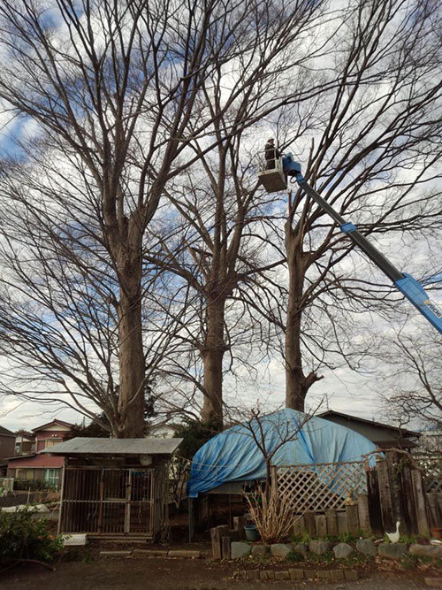 敷地内ケヤキの伐採!