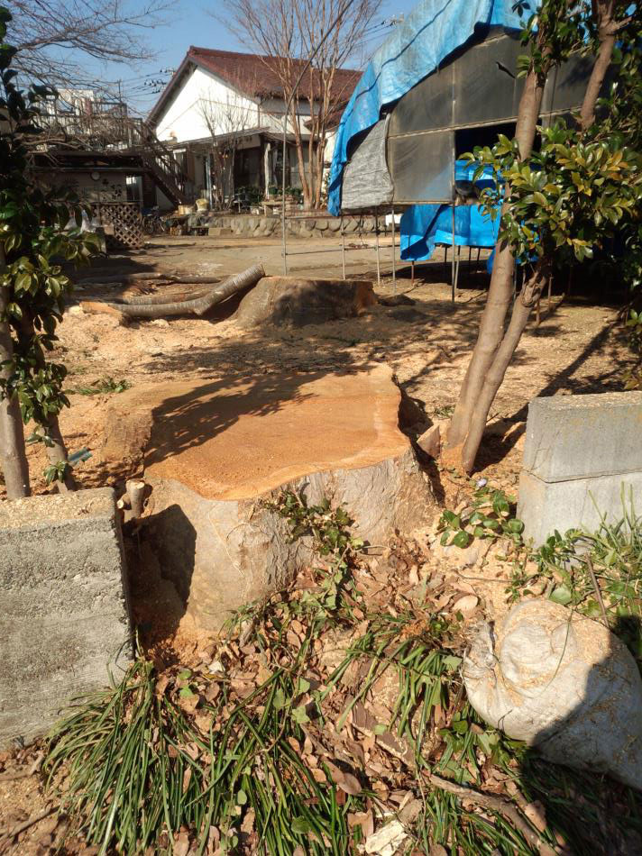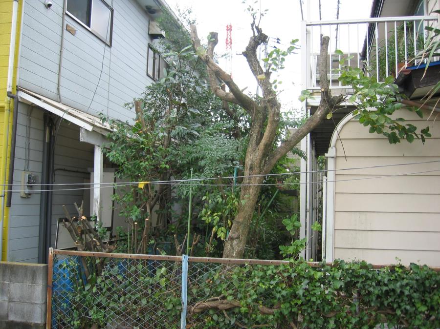 お隣のお宅に入っていた樹木を伐採し、日当たりよく、庭のスペースもとれるようになりました。